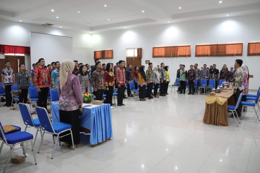 Penyerahan Surat Keputusan (SK) Kepala Badan Kepegawaian Nasional (BKN) tentang Penempatan Tugas dan SK PNS Lulusan IPDN Angkatan XXIX Tahun 2022 sekaligus Penyerahan SPMT CPNS Lulusan IPDN Angkatan XXX, berlangsung di Aula Kantor BKD Provinsi Kalteng, Kamis (21/12/2023). Ada 59 orang yang menerima SK. Sebanyak 9 orang mendapatkan penempatan tugas di Kementerian Dalam Negeri (Kemendagri), 50 orang di Kalteng.