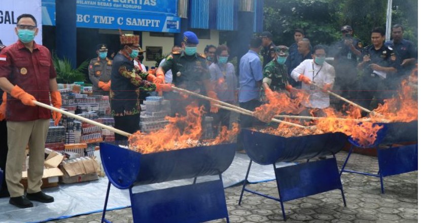 Rokok ilegal dimusnahkan dengan dibakal. Sementara minuman beralkohol dibuang. Kepala KPPBC Sampit Agus Dwi Setia Kuncoro mengatakan, barang yang dimusnahkan ini hasil penindakan Bea Cukai Sampit selama periode Juli 2023 hingga Desember 2024.