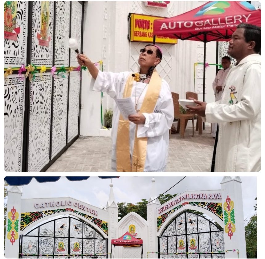 PALANGKARAYA – Pintu gerbang kompleks Catholic Center Palangkaraya di Jalan DA Tawa, Kelurahan Bukit Tungal, Kecamatan Jekan Raya, diresmikan Uskup Palangkaraya Mgr Dr Aloysius Maryadi Sutrisna Atmaka, MSF, Jumat (31/1/2025). Peresmian pintu gerbang ini dihadiri juga Uskup Keuskupan Agung Samarinda Mgr Harjo Susanto MSF dan Uskup Tanjung Selor Mgr Paulinus Yan Olla, MSF. Turut hadir para Pastor, biarawan/biarawati, serta ratusan umat Katolik Keuskupan Palangkaraya.