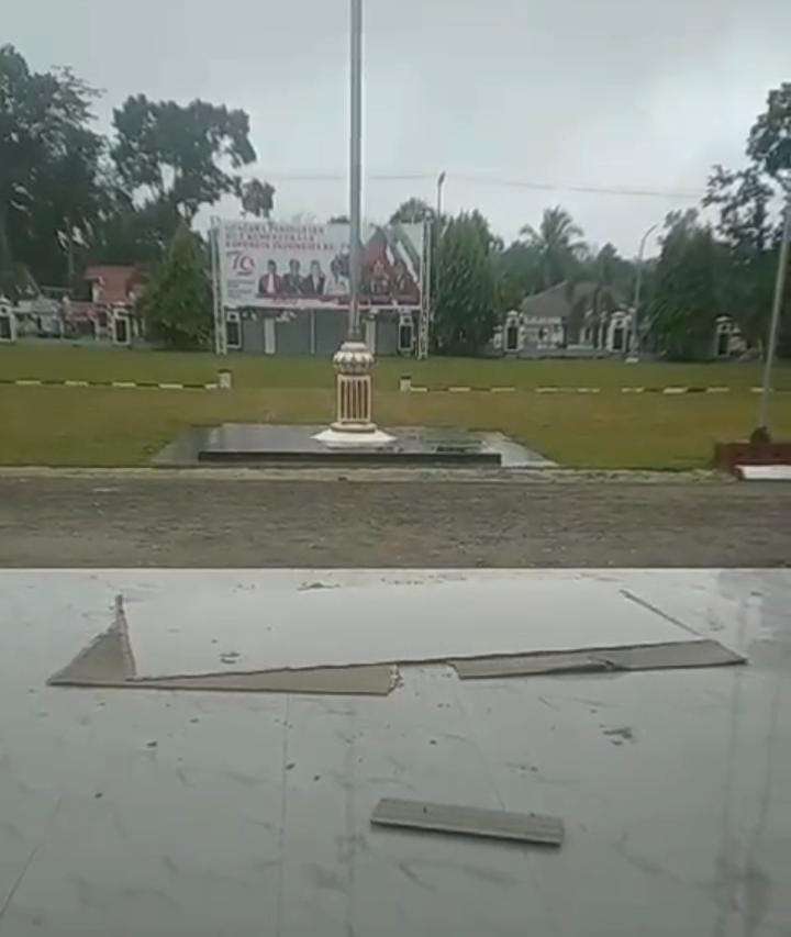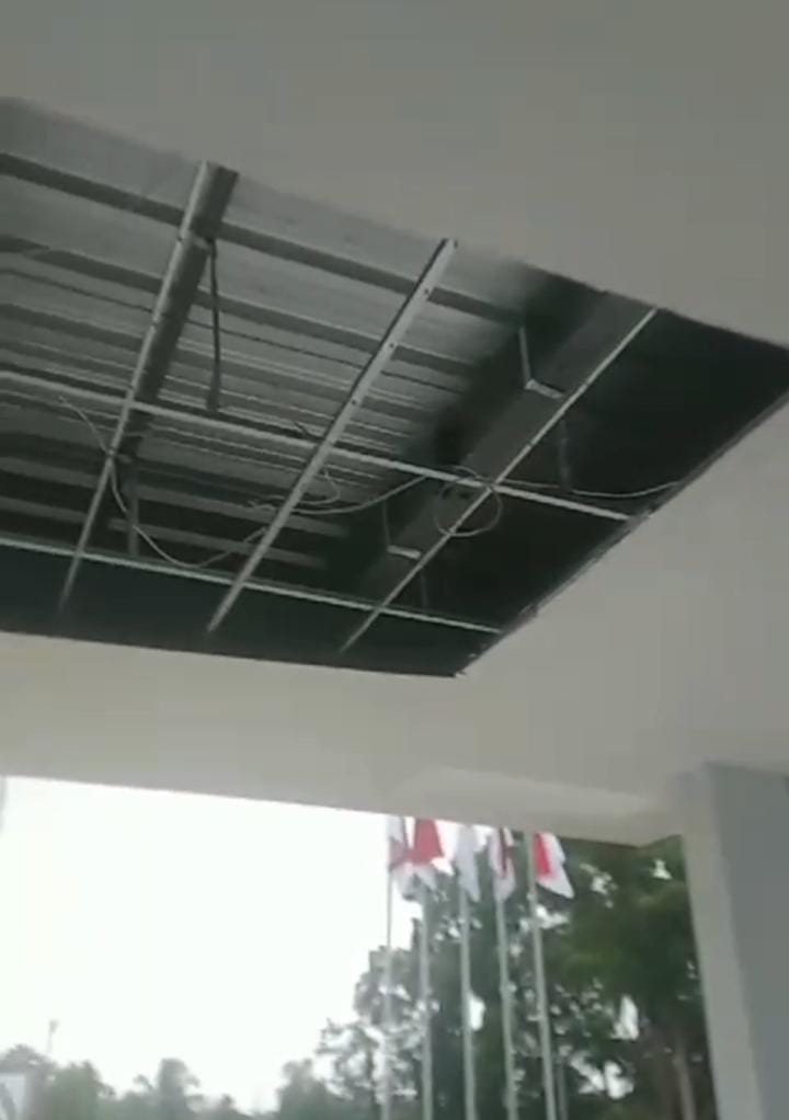 TAMIANG LAYANG – Proyek rehab Kantor Bupati Barito Timur (Bartim), Provinsi Kalimantan Tengah (Kalteng), menuai sorotan. Baru sebulan direhab dengan anggaran Rp7 miliar lebih, plafon bangunan di depan teras malah sudah ambruk.