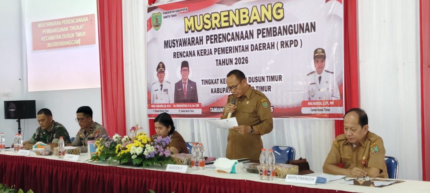 Asisten II Setda Bartim Amrullah hadir mewakili Pj Bupati Barito Timur. Musrenbang dipandu Kepala Bappelitbangda Kabupaten Bartim Franz Sila Utama. Hadir sejumlah kepala Organisasi Perangkat Daerah (OPD), unsur Muspika, kepala desa, Badan Permusyawaratan Desa (BPD), tokoh adat, dan tokoh masyarakat se-Kecamatan Dusun Timur.