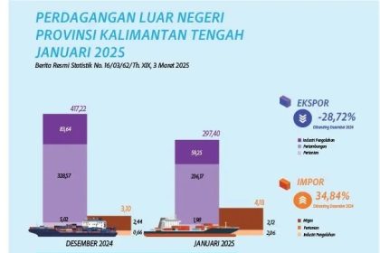 Januari 2025, Nilai Ekspor Kalteng Turun 28,72 Persen, Impor Naik 34,84 Persen
