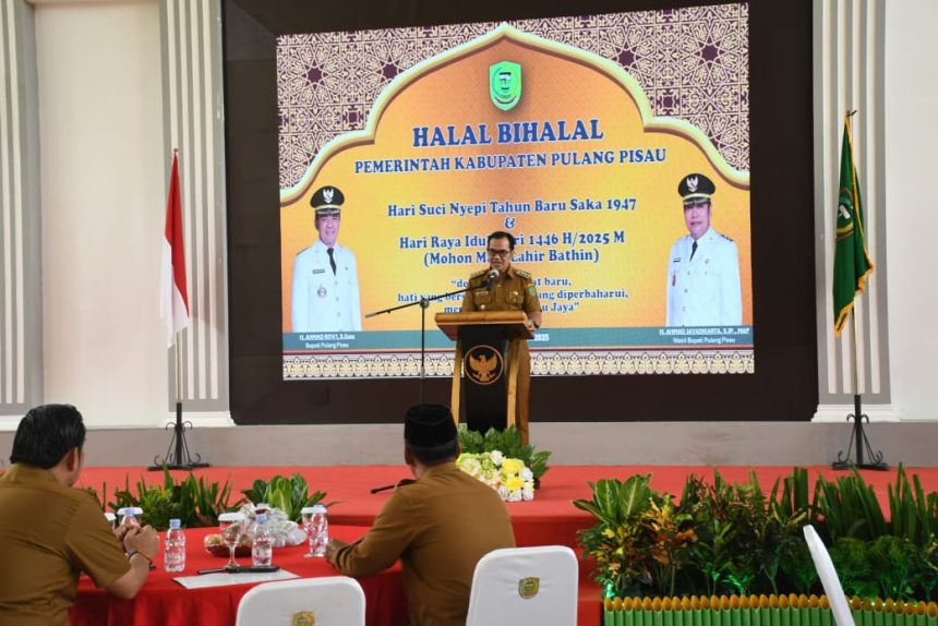 PULANG PISAU – Pemerintah Kabupaten (Pemkab) Pulang Pisau (Pulpis) menggelar acara Halal Bihalal pada hari pertama kerja pasca liburan Idul Fitri 1446 H, Selasa (8/4/2025). Halal bihalal berlangsung di Aula Banama Tingang Kantor Bupati Pulang Pisau.