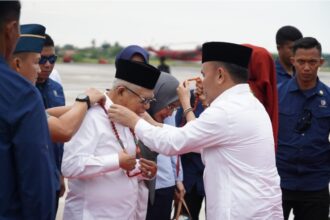 Turun di Bandara Tjilik Riwut, Wapres Disambut Gubernur dengan Pengalungan Lilis Lamiang