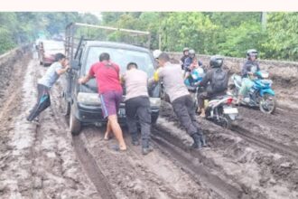 Proyek Jalan Kasongan-Kereng Pangi Picu Lumpur Parah di Desa Hampalit, Sejumlah Kendaraan Terjebak