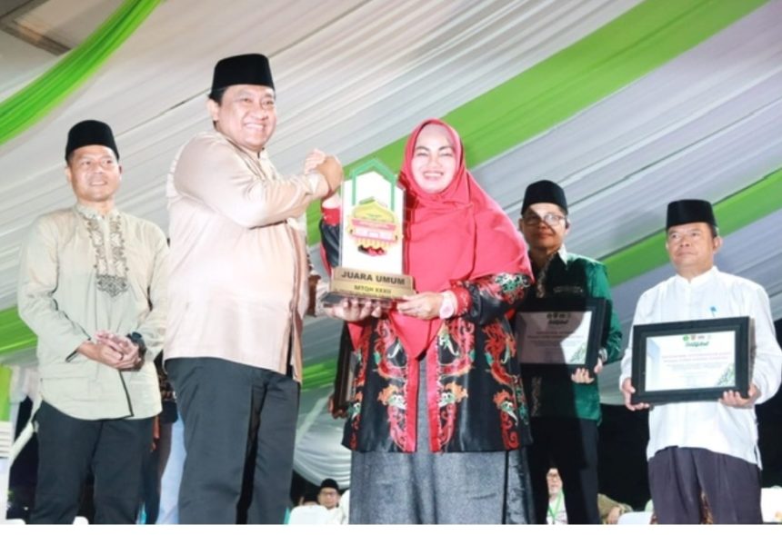 Wakil Gubernur Kalteng H. Edy Pratowo saat menyerahkan piala kepada Juara Umum Daerah MTQH XXXII Tingkat Prov. Kalteng
