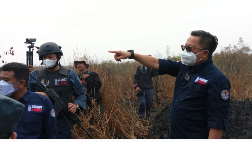 Dirjen Gakkum KLHK RI Rasio Ridho Sani bernama tim saat berada di lokasi lahan PT PGK di Kecamatan Sebangau, Kota Palangka Raya, Jumat (6/10/2023).