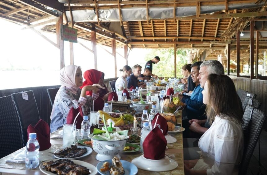 PALANGKARAYA – Ketua Dekranasda Provinsi Kalteng Ivo Sugianto Sabran Ramah Tamah bersama para Rider Peserta UCI MTB Eliminator World Championship Tahun 2023, bertempat RM Kampung Lauk Palangka Raya, Senin (13/11/2023) siang.