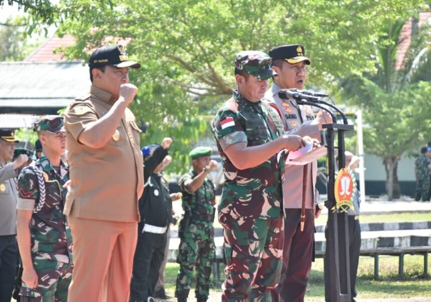 PALANGKA RAYA – Korem 102/Pjg melaksanakan Apel Gelar Pasukan dalam rangka Pengamanan Kunjungan Kerja Wakil Presiden Republik Indonesia (RI) ke Provinsi Kalteng, bertempat di Lapangan Makorem 102/Pjg, Senin (23/10/2023). Apel Gelar Pasukan dalam rangka Pengamanan VVIP Wakil Presiden Republik Indonesia KH. Maruf Amin beserta istri Hj. Wury Maruf Amin, yang akan melakukan kunjungan kerja ke Kota Palangka Raya dan Pangkalan Bun, Kabupaten Kotawaringin Barat, Selasa dan Rabu (24-25/10/2023).