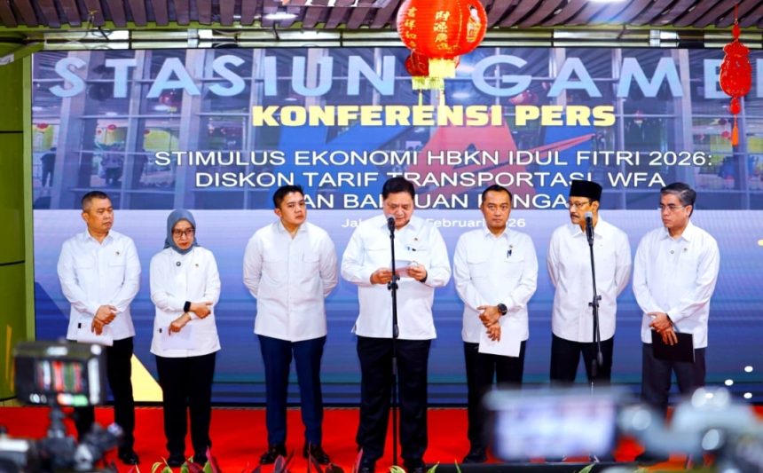 Kebijakan tersebut disampaikan Menteri Koordinator Bidang Perekonomian Airlangga Hartarto dalam Konferensi Pers terkait Capaian Ekonomi Tahun 2025, Stimulus Ekonomi Hari Besar Keagamaan Nasional (HBKN) Idulfitri 2026, Diskon Ta rif Transportasi, WFA, dan Bantuan Pangan yang digelar di Stasiun Gambir, Jakarta, Selasa (10/2/2026).