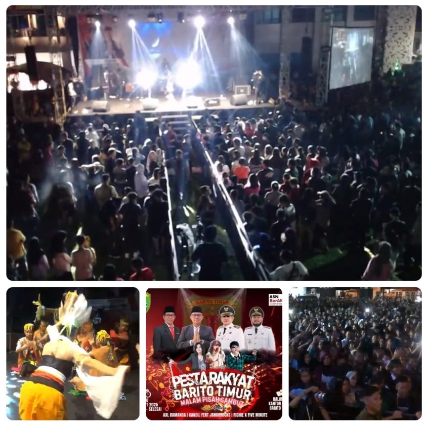 TAMIANG LAYANG – Bupati Barito Timur (Bartim) Muhammad Yamin dan Wakil Bupati Adi Mula Nakalelu mengawali kepemimpinan dengan pesta rakyat, yang digelar di halaman kantor Bupati Bartim, Rabu (5/3/2025) malam. Ribuan warga tumpah ruah di lokasi pesta. Acara berlangsung spektakuler.