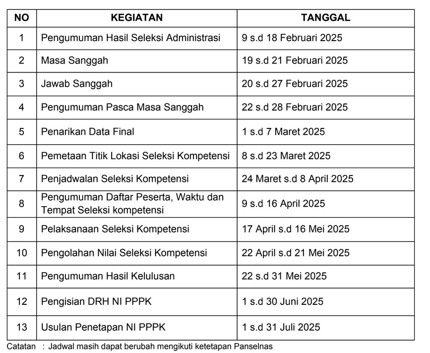 Berikut Jadwal dan tahapan Pelaksanaan Seleksi Pengadaan Calon PPPK Pemkab Katingan Tahun Anggaran 2024 Tahap II: