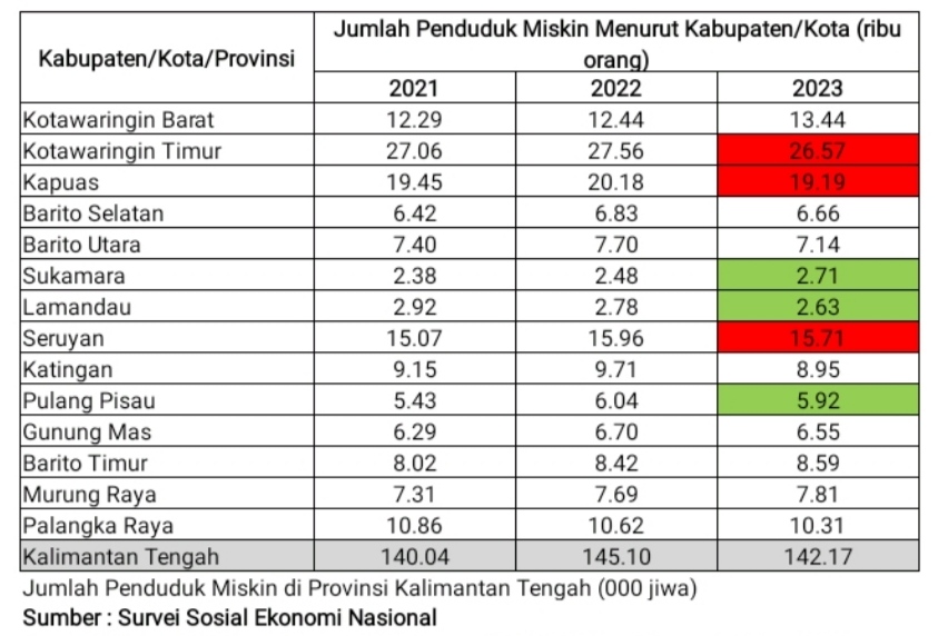 Hasil Survei Sosial Ekonomi Nasional yang dilakukan Badan Pusat Statistik (BPS) Kalteng, pada triwulan III tahun 2023, mencatat ada 142.170 orang masih hidup dalam kategori miskin.