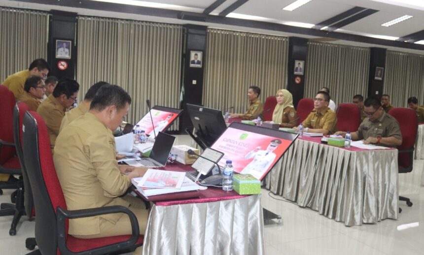 PULANG PISAU – Penjabat (Pj) Bupati Pulang Pisau (Pulpis) Hj Nunu Andriani memaparkan sejumlah capaian kinerja yang telah dilakukan, dalam kurun waktu menjabat selama tiga bulan pertama, di hadapan Tim Evaluator dari Kemendagri.