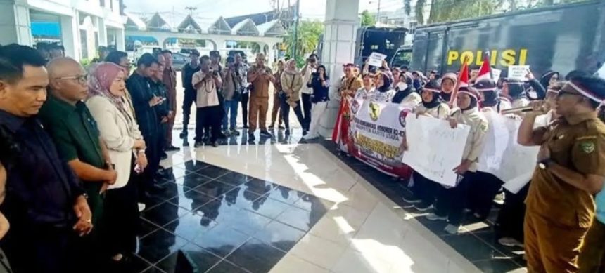 MUARA TEWEH – Ratusan pegawai honorer yang mengabdi di Pemkab Barito Utara (Barut), melakukan aksi unjuk rasa di gedung Dewan Perwakilan Rakyat Daerah (DPRD), di Jalan Ahmad Yani Muara Teweh, Senin (10/2/2025).