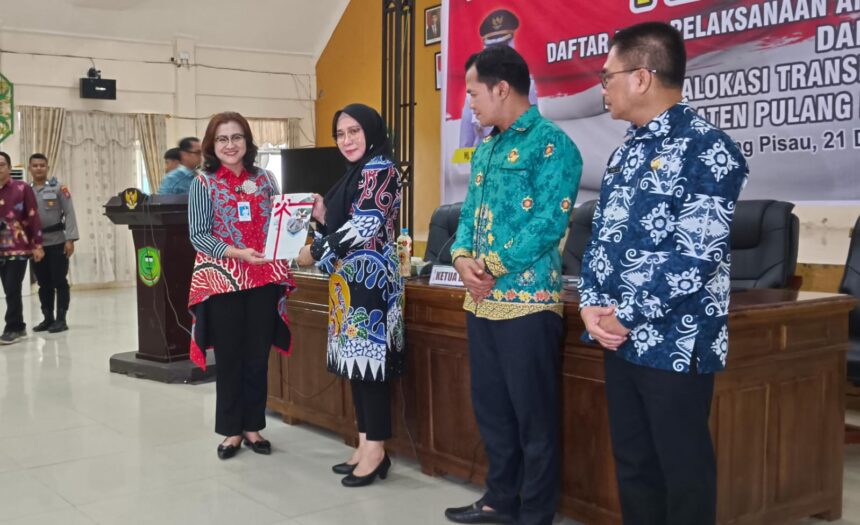 PULANG PISAU – Penjabat ( Pj) Bupati menerima DIPA 2024 yang diserahkan Kepala Kantor Pelayanan Perbendaharaan Negara (KPPN) Palangkaraya Indra Karunia Dewanti, bertempat di Aula Bappeda Pulpis, Jalan Mentaren Kecamatan Kahayan Hilir, Pulang Pisau, Kamis ( 21/12/2023).