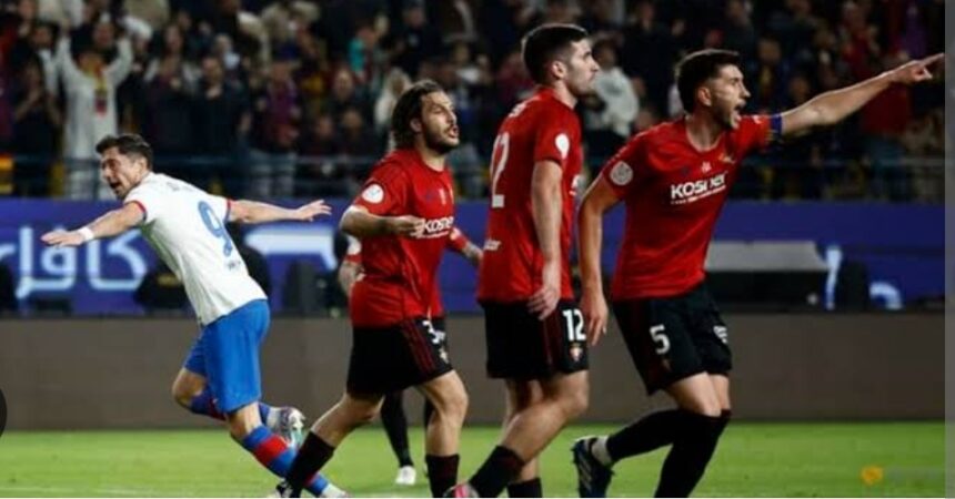 RIYADH – Osasuna kalah 0-2 dari Barcelona dalam laga semifinal Piala Super Spanyol, Jumat (12/1/2024) dinihari WIB, di Stadion Al Awwal, Riyadh. Kekalahan dari Barcelona ini tak diterima baik. Los Rojillos menilai kompetisi ini dibuat hanya untuk Barca dan Real Madrid saja.