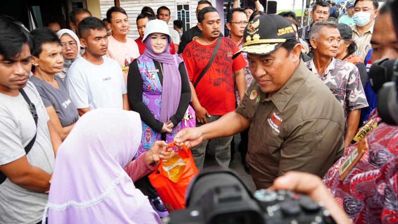 Wagub Kalteng Edy Pratowo saat melakukan peninjauan pasca kebakaran yang terjadi di kawasan pemukiman padat penduduk ini, menyampaikan keprihatinannya atas musibah yang terjadi di Jalan Mendawai belakang Pasar Kahayan, Kelurahan Palangka, Kota Palangka Raya tersebut.