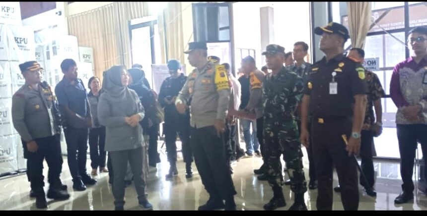 PULANG PISAU – Wakapolda Kalteng Brigjen Pol Mohamad Agung Boedijono mengunjungi tempat penyimpanan Logistik Pemilu 2024 di Christian Center, Jalan Lintas Trans Kalimatan, Kabupaten Pulang Pisau, Jumat (19/1/2024).