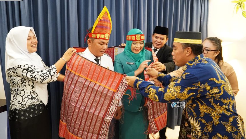 PURUK CAHU – Wakil Bupati (Wabup) Murung Raya (Mura) Rahmanto Muhidin didampingi istri, Dina Maulidah, menerima penyematan tanda penghargaan marga Lumban Gaol dari keluarga besar Lumban Gaol Provinsi Kalimantan Tengah (Kalteng).